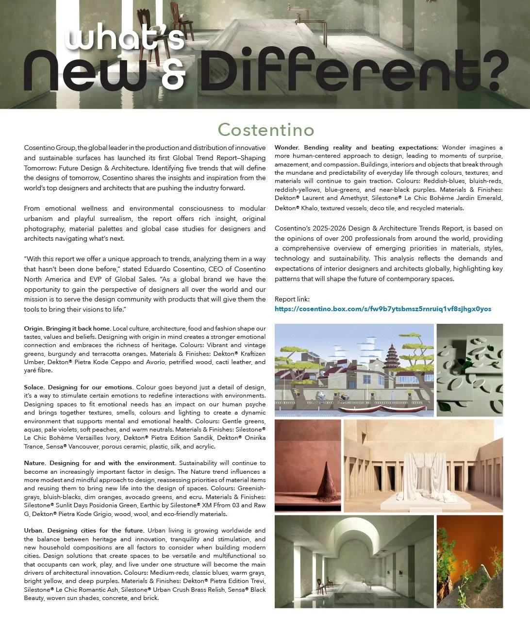Cosentino Group—the global leader in the production and distribution of innovative and sustainable surfaces—has launched its first-ever Global Trend Report: Shaping Tomorrow – Future Design & Architecture.